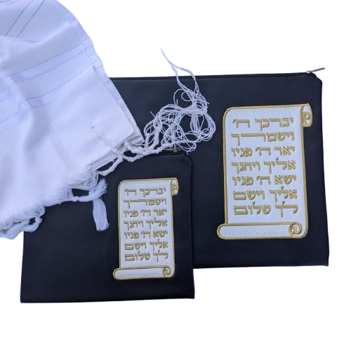 כיסויים לטלית ולתפילין דמוי עור ברכת כהנים רקע כחול